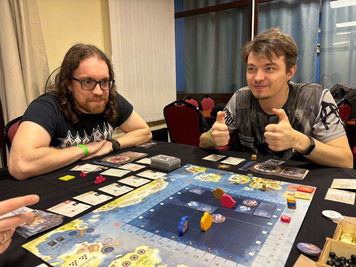 Как я уже говорил, в своём обзоре, "Мы тонем" - это отличный америтреш-патигейм, невероятно удалая игра, даже, я бы сказал, хиден гем с кикстартера, на который я в своё время долго облизывался и все-таки решил заказать. Причём очень мало я об игре слышал, очень мало про неё говорили, и как будто она прошла достаточно незамеченной (ну, даст Бог, конечно, в декабре издатели порадуют анонсом). Не буду долго растекаться мыслью по древу. Просто переходите по ссылочке, читайте обзор. Просто скажу о том, что сыграли мы уже 4 раза разными составами, и все остались в восторге, разные составы. Игра отлично скейлится на разные составы от 3 до 6 человек. В ней огромный вагон разнообразия в плане противников, с которыми ты сталкиваешься, плюс то, как идёт игра, тебя подталкивает переобуваться в прыжке: то вы лихо такие собираетесь побить чудище, которое вылезло на вас из морских глубин, то вы понимаете, что корабль долго не протянет и приходится в спешке разбрасывать все награбленное, чтобы не пойти ко дну и всеми силами топить судно. В общем, игра - лютый кайф: вшестером за час с небольшим поорать, повеселиться - самое отличное приобретение, я считаю.