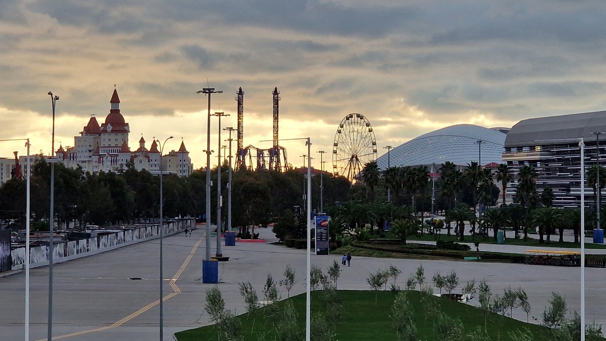 Предвечерний Олимпийский парк при затянутом кучевыми облаками небе выглядел примерно так, но все равно было очень красиво: