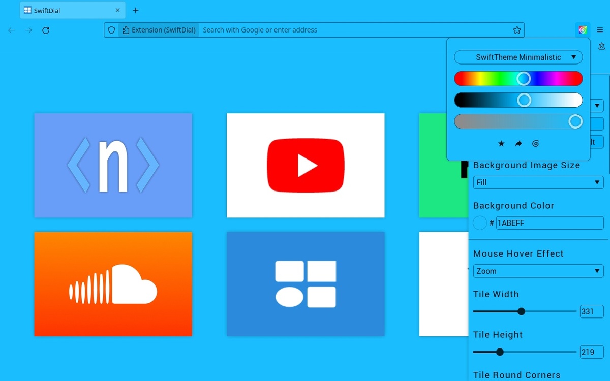 ꩜SwiftTheme - Выберите любой цвет и получите уникальную тему браузера. Ваши донаты помогут нам вернуться к более регулярному выпуску новых версий SwiftDial, SwiftTheme и других наших решений. 🎁 Донатом Оценками, упоминаниями, лайками и подписками Вы помогаете новым пользователям открыть для себя удобства SwiftTheme. ⭐ Оценкой ↗️ В соцсетях ✔️ Адаптируемая - автоматически подстраивается к выбранному Вами цвету ✔️ Вариативная - в Вашем распоряжении несколько вариантов тем ✔️ Безграничная - выбирайте из более чем 3 миллионов цветов ✔️ Удобная - интуитивная настройка цвета ✔️ Совместимая - можно использовать даже со старым дизайном Firefox ✔️ Спокойная - не конфликтует с другими темами браузера