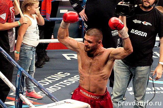 На арене Академии единоборств РМК в Екатеринбурге прошел представительный боксерский турнир, в главном событии которого состоялось возвращение в ринг известного средневеса Магомеда Курбанова. Екатеринбуржец, напомним, в своем предыдущем бою, где на кону стоял чемпионский пояс по версии WBA, досрочно проиграл Исраилу Мадримову из Узбекистана. Поражение стало для Курбанова первым в карьере и достаточно болезненным. Для возвращения Черному Льву подобрали, как нередко бывает в подобных случаях, опытного и именитого, но находящегося на сходе соперника – Асланбека Козаева. Уже в стартовом раунде екатеринбуржец мощно пробил по корпусу, и рефери пришлось отсчитать нокдаун. Однако боксер из Владикавказа проявил характер и сумел восстановиться. Тем не менее, Курбанов продолжил действовать агрессивно и разнообразно, забирая раунд за раундом. В шестом отрезке хозяин ринга точно пробил двойку в голову оппонента, Козаев поплыл, а рефери остановил поединок. Победа стала для Курбанова 26-й в карьере