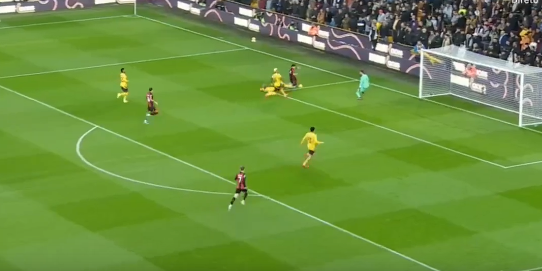 Суперсвязка. Нечто историческое в АПЛ может приключиться даже в матче «Вулверхэмптон» – «Борнмут». Самое яркое из их 2:4 – впервые в лиге мы увидели хет-трик с пенальти. Шикарная реализация у Джастина Клюйверта, сына Патрика. Три фола на Эванилсоне – три пенальти. Дал все Клюйверту для хет-трика «Борнмут» за матч установил сразу два рекорда Премьер-лиги. Джастин Клюйверт забил три пенальти в одном матче, а бразильский нападающий Эванилсон их заработал – до него тоже так никто не делал. 3-я минута. Эванилсон получил пас за спину защитникам со своей половины, поставил спину защитникам и вынудил фолить. Угол был острый – кажется, защитнику Тоти не было острой нужды так прыгать в ноги. Клюйверт забил. 15-я минута. Эванилсон подкараулил зазевавшегося Жозе Са. Пока соперник думал, кому пасовать, и замахивался, нападающий выбил мяч – кипер попал по ноге. Чистый 11-метровый, и его реализовал Клюйверт. 71-я минута. Теперь Эванилсон подкараулил пас назад от защитников и снова опередил вратаря. О