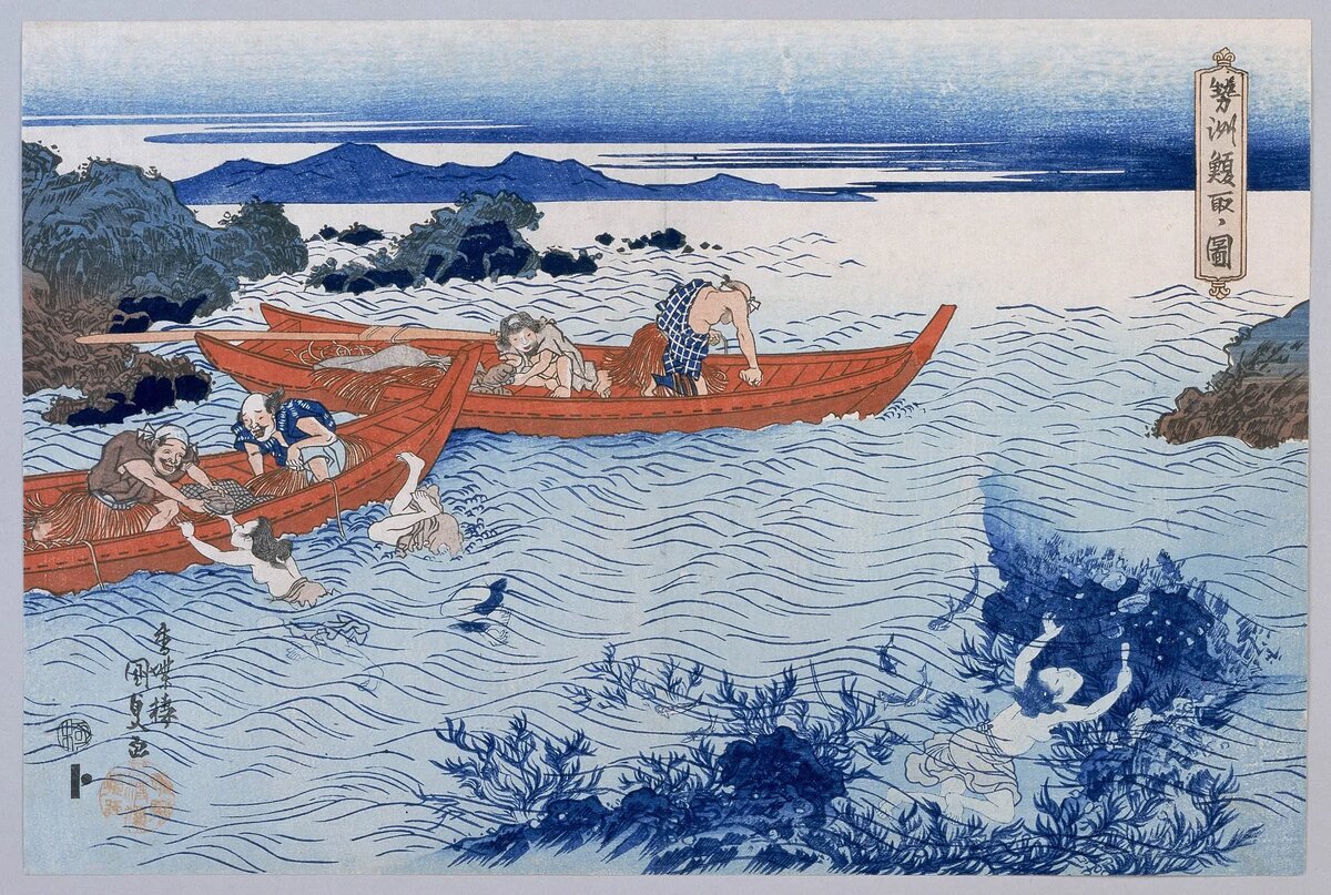 Жемчуг — единственный из ювелирных материалов, образующийся в теле моллюсков, и он же, возможно, один из старейших, используемых в качестве украшения, поскольку не нуждается в дополнительной обработке. На протяжении многих веков высококачественные жемчужины продавались за весьма крупные суммы денег. Однако добыча жемчуга долгие времена была связана с тяжелым трудом ныряльщиц, опускающимися в поисках раковин моллюсков на дно океана и рискующими ради этого своей жизнью и здоровьем. Первые письменные упоминания о японских ама появляются в датированном концом III века до н. э китайском произведении «Перевод о людях ва Записей Вэй». В свое время китайцев до глубины души поразили ныряющие в морскую пучину японские русалки – женщины ама. Ама — преимущественно молодые женщины, так как считалось, что им проще, чем мужчинам долго находится в воде и не переохлаждаться, благодаря развитому подкожному жиру. В давние времена ныряльщицы поставляли свою добычу к столу императора и в различные храмы,