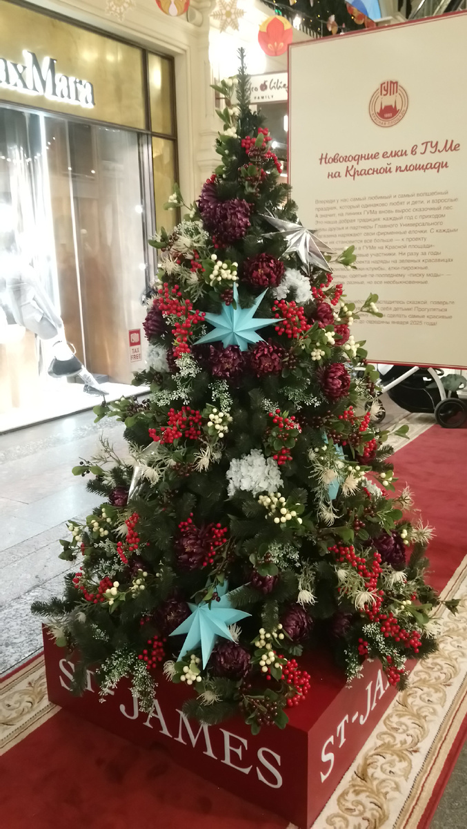 Традиции бесценны, для всего остального есть была Mastercard. Ежегодный парад елок в ГУМе стабилен вопреки всему происходящему в стране и мире, и уже много лет за новогодним настроением езжу именно сюда. В прошлом году не пропустила, но поленилась вовремя написать, сейчас же исправляюсь по горячим следам. Нынче много новых брендов, но субботний вечер не располагает к нормальным ракурсам - поток людей и дети, которым надо потрогать, дернуть, укусить украшения... Поймать момент непросто, поэтому что вышло - то вышло. И первыми вышли бордовые хризантемы с рябиной: Без Щелкунчика не могут обойтись - удивительно, конечно, но... Белая лаконичность: Аппетитная елочка у кафе, цены которого и отзывы о еде и сервисе гонят куда подальше отсюда (уже дома почитала и удивилась) Мороженое ГУМа - явление необъяснимое. На вкус ничего особенного, не раз ела, но - бренд, за ним в любую погоду очереди у каждой точки продаж. Наверное, три основные ассоциации с магазином сейчас - каток, елки и мороженое. Не