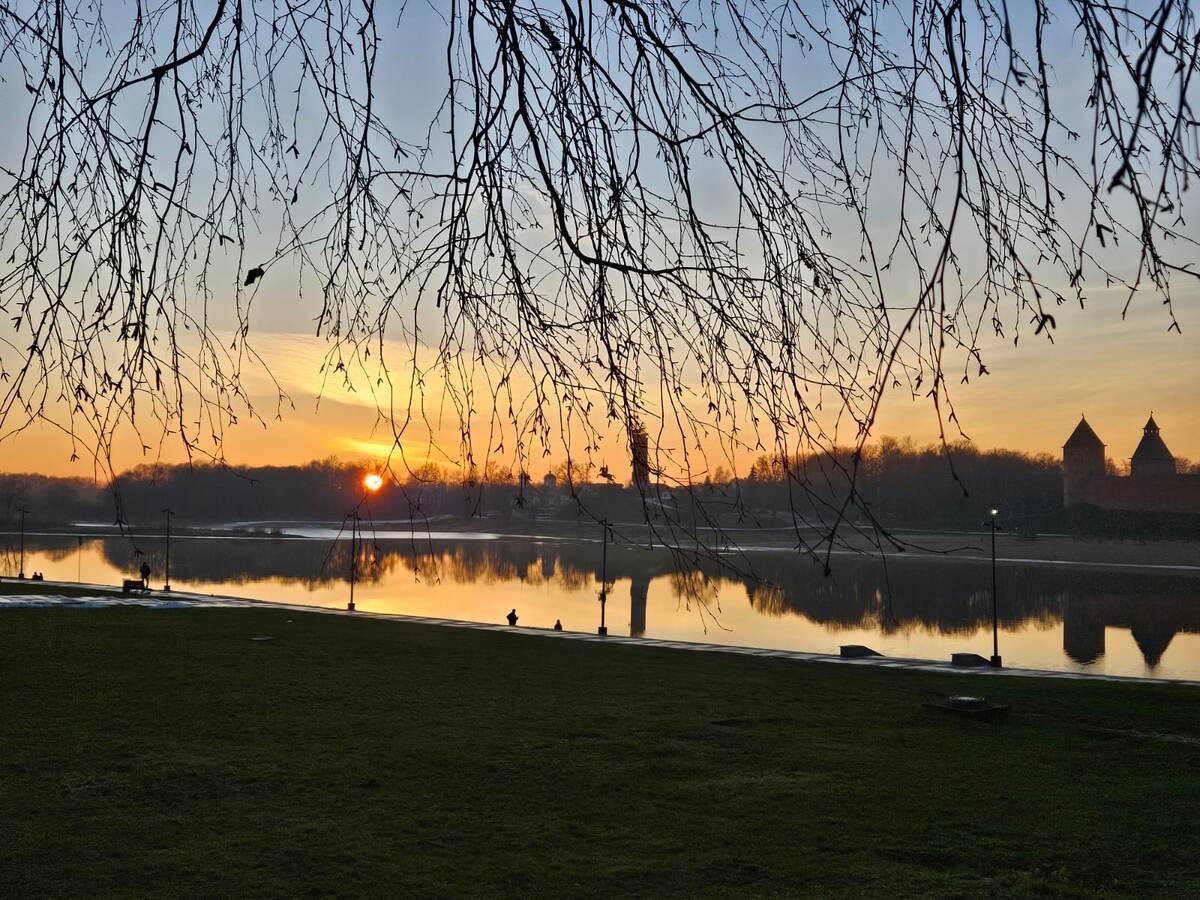В Петербурге 29 ноября было пасмурно и серо, а Великий Новгород встречал нас заходящим солнцем: