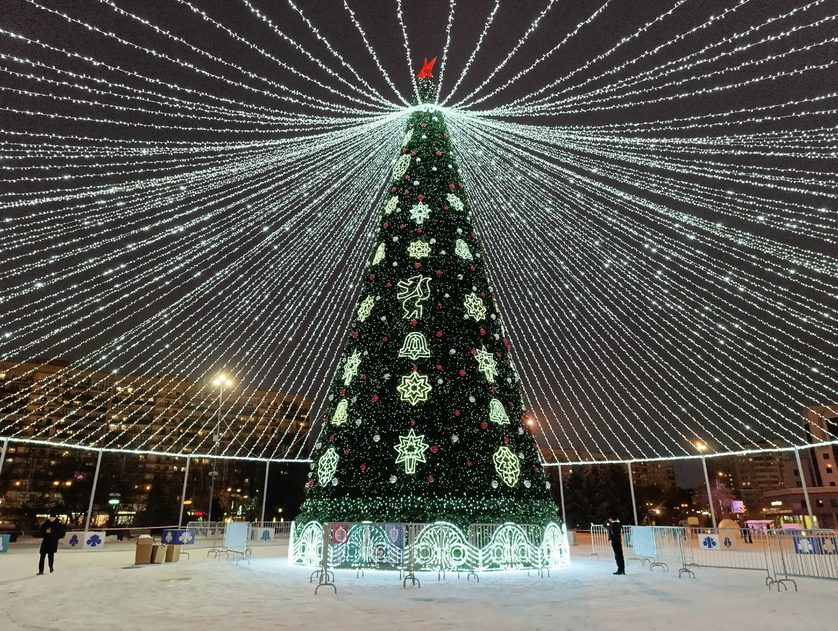 Вот и зима пришла. А в центре города, оказывается, уже везде ёлки. Вчера, волею судеб, была в районе Драмтеатра, там вот такую красавицу уже установили. Ну, по порядку. В субботу в деревню мы ездили с дочкой. Мне хотелось её немного развеять, да и пообщаться - нынче мы, как-то, совсем редко видимся. Сначала я, правда, заехала кой-куда по своим делам - в Озон отвезти заказы и во Все Инструменты их получить. Поэтому выдвинулись в сторону деревни мы поздновато - ближе к 11 часам. Ещё я прихватила свои часы, чтобы заехать в часовую мастерскую и вытащить из них старую батарейку (часы - подарок на 55 лет, пролежали в тумбочке 5 лет, батарейка села, естественно, за такое долгое время). Вытащить я её решила из-за комментария одной подписчицы, где говорилось, что батарея, разложившись, может попортить механизм. А этого не хотелось, они дорогие всё же. Но на пути к дочери заехать в мастерскую уже не успела, и это получилось к лучшему, в итоге. День был очень пасмурный, даже казалось, что в возд