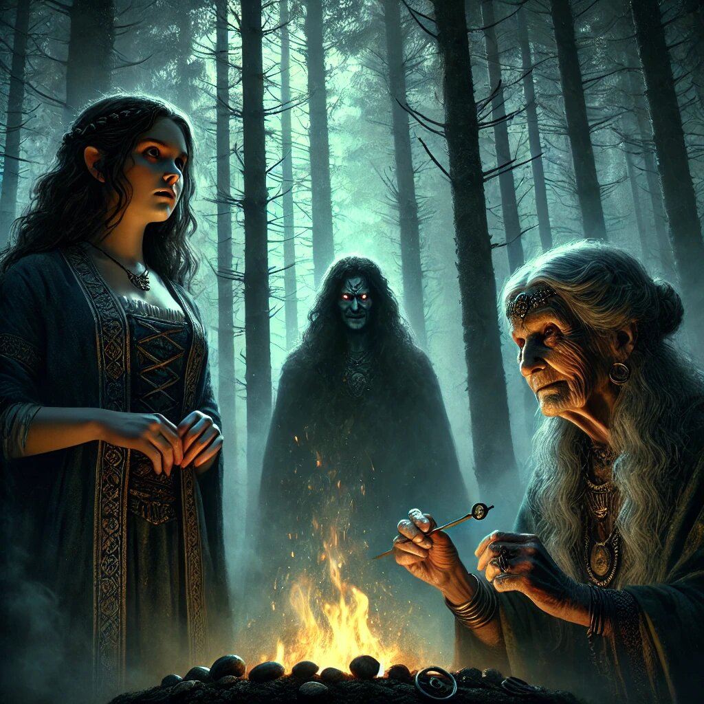— Ратибор, — говорит Ильмара, указывая на первый камень. — Мёртв, как ты видела. В чёрной земле его кости. Второй камень для Вышенеги. Сера её судьба, как шейка горлицы. Злые чары скоро источат её тело и сведут вдову в могилу.