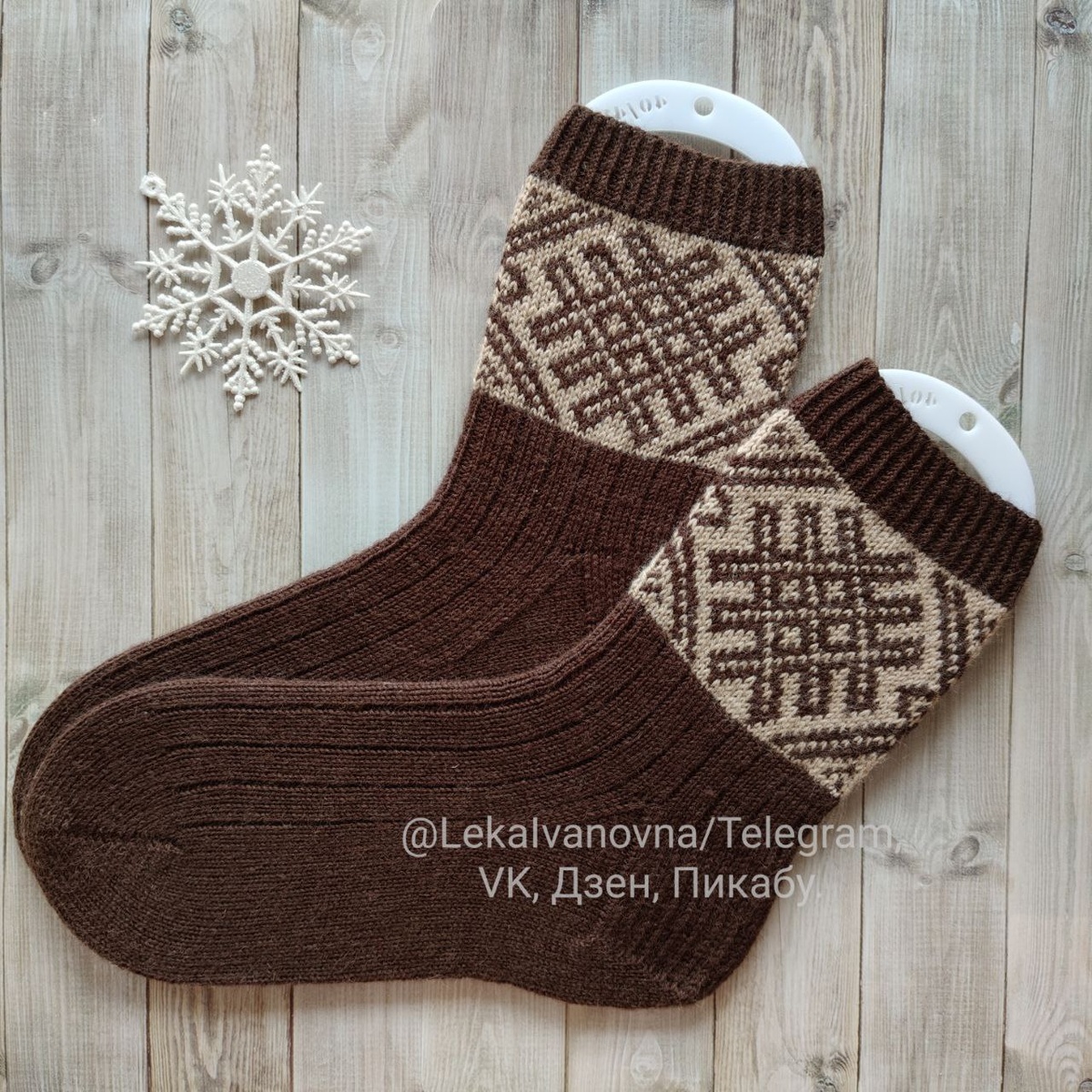 Всех приветствую. Для тех, кто не знает, меня зовут Ольга. Я люблю вязать носки и с удовольствием беру их в заказы. Сегодня хочу вам показать пару своих работ и конечно же поделиться схемами. Эти носочки с элементами жаккарда, связаны на спицах №2 из турецкой пряжи Нако Бохо. Пряжа шерстистая, после ВТО (влажно тепловая обработка) шерстинки заполнили межпетлевое пространство, что для жаккарда очень актуально. Метраж этой пряжи 400 метров на 100 грамм. Из пряжи такого метража носки получаются не толстые, вполне ,, входят,, в осенне-зимнюю обувь. Укрепленная пяточка для того, чтобы носки ,, жили подольше,,. Мысок бумеранг. Не так давно стала использовать такой мысок, до этого вязала ленточный. Мысок бумеранг мне очень понравился. Вязать его конечно не так удобно как ленточный, но смотрится он более привлекательно. Ну и конечно схема. Вторая работа тоже носки, но уже однотонные. Пряжа для этой пары из итальянского стока. Просто супер мягкая, нежная. Пряжа из итальянского стока всегда с