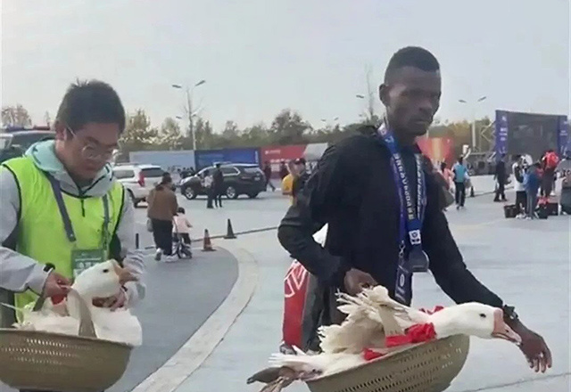 Победителям китайского марафона вручили живых гусей