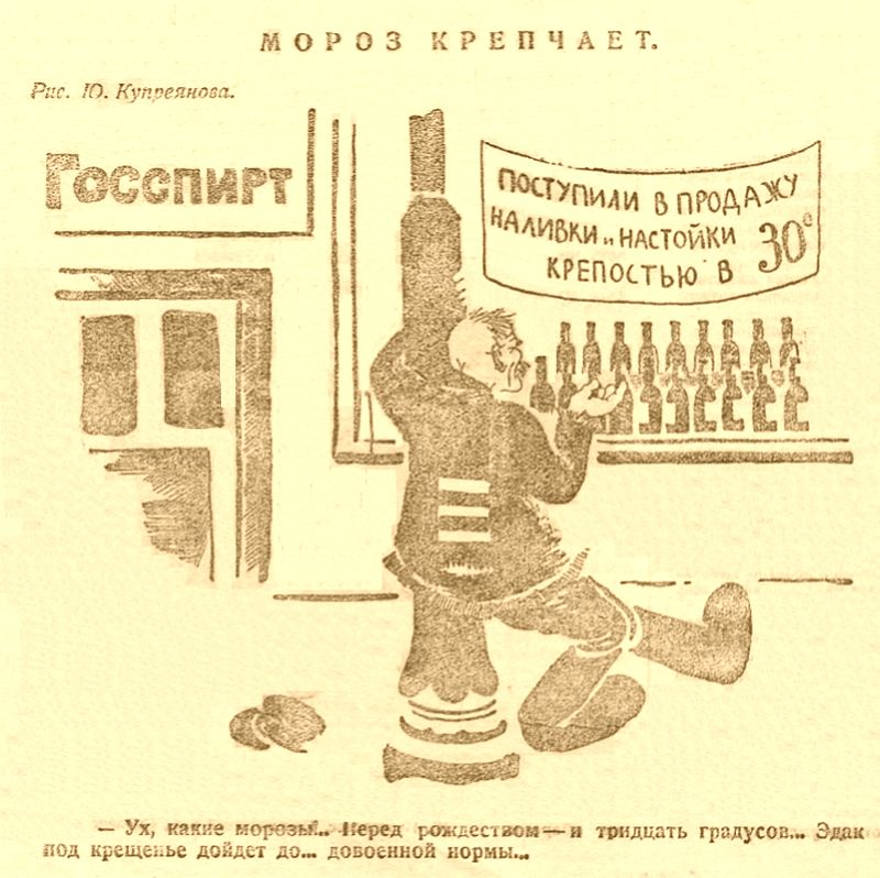 Николай Купреянов (1894—1933). 1924, декабрь. «Мороз крепчает. — Ух, какие морозы... Перед рождеством — и тридцать градусов... Эдак под крещенье дойдёт до... довоенной нормы...»