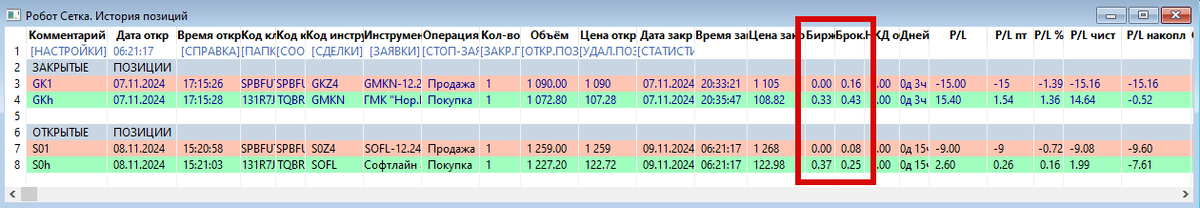 Пожалуй, самая незаменимая в моей торговле разработка Утилита для QUIK «История позиций». Придумал в 2009-м, запрограммировал на QPILE, затем перевёл на QLUA. Программу писал для себя, не под заказ и по своим идеям. Продажи данной программы никогда не отличались большим количеством и стабильностью. Поэтому, считаю её самой недооценённой из десятков своих разработок. Попытаюсь донести полезность утилиты из реальных примеров использования. Недавно выпустил обновление 20241024. ✅ Учёт комиссий для фондовой секции теперь разделён на биржевую и брокерскую. ✅ Учтена разница комиссий мейкерских и тейкерских заявок. На скрине видно, как распределяются комиссии биржи и брокера. Сверил с отчётом брокера – всё сходится. Программа сразу рассчитывает и выводит информацию о комиссионных затратах. Напомню, в терминале QUIK информация о биржевой комиссии урезана, а брокерская и, вовсе, недоступна. ✅ Учёт информации о позиции без ограничений. Мне, как инвестору, очень важно видеть покупки акций пакетам
