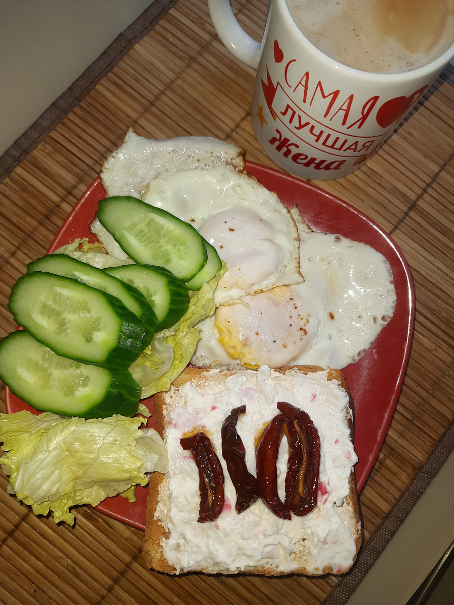 Всем привет👋. Продолжаю делиться с вами своим опытом снижения веса без заморочек. 3 стандартных сырника+2 ст л сметаны+1/2 ст ягод или 1 фрукт+ чай/кофе. 15 орехов Суп с фрикадельками, картошкой, луком, лапшой стандартная тарелка 250 мл+салат из огурцов и помидоров 1 ст+ 1 кусок хлеба+чай. Индейка 100г, тушеная с овощами 1 ст (капуста, помидоры, стручковая фасоль, микс овощей)+ чай. На обложке мой сегодняшний завтрак. Делала летом вяленые помидоры. На хлеб с творожным сыром их положила. Оказалось очень вкусное сочетание, даже не ожидала. 2 яйца, кусок хлеба с ч л творожного сыра и вялеными томатами+овощи+ кофе. У нас вчера случайно получился день больших покупок. Ничто не предвещало, как говорится. Вышли с дочкой и внуком просто погулять. По пути решили заглянуть в наш любимый магазин одежды. Итог - оставили там очень много денежек, но ушли довольные как слоны. Вот думаем, сегодня вечером надо, наверное, немного отметить удачные покупки 😂. И еще такое классное пальто прикупили, из ра