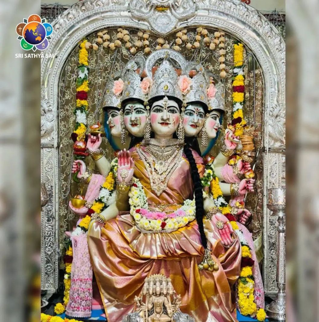 Даршан Матери Гаятри Прашанти Нилаям "Гаятри — это воплощение материнского принципа. Вы должны повторять Гаятри-мантру каждый день, утром, днём и вечером. Эти промежутки времени называются Пратах Сандхья, Мадхьяхна Сандхья и Сайям Сандхья. Когда вы стоите спиной к солнцу, ваша тень будет перед вами. Она будет падать позади вас, только когда вы встанете лицом к солнцу. Точно так же Майя (иллюзия), которая подобна вашей тени, одолеет вас, когда вы отвернёте свой ум от Бога. Её можно преодолеть, только обратив свой ум к Богу". Божественная беседа, 10 февраля 2000 г.