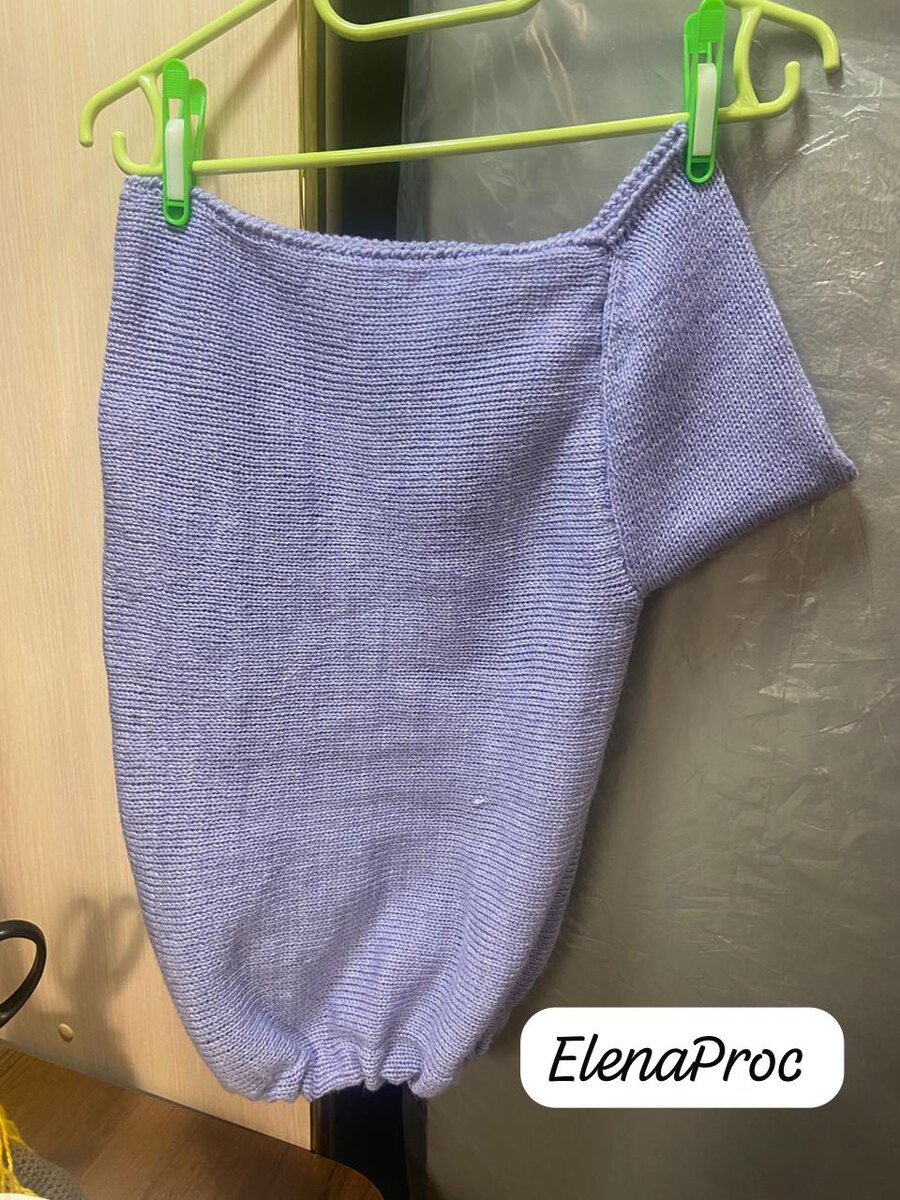 Основное полотно изделия связано в поперечном направлении.В изделии имеется ластовица. Все детали связаны лицевой гладью.