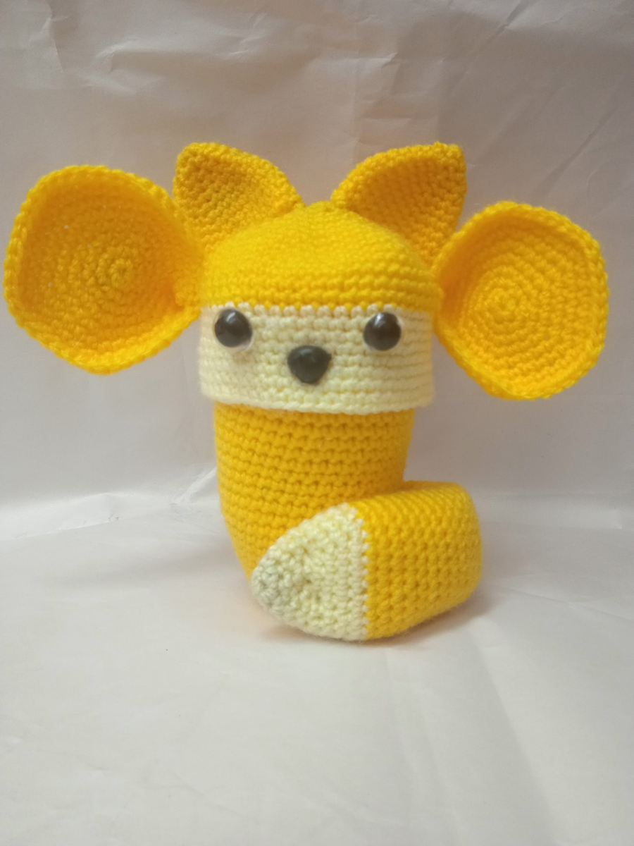 Всем привет Моя внучка не любит читать книги, но любит фантазировать. Но так как она учится в третьем классе, её приходится заставлять читать. Однажды соседский мальчик принёс книгу про солнце. Моя внучка очень удивилась, что солнце является звездой, а потом обиделась и решила нарисовать свое солнце. С хвостиком лисы, с ушами слона, с желтыми лучами солнца как подсолнух. По некоторым причинам я не смогла сохранить рисунок и решила связать такое солнышко. Вязала это солнышко по типу матрёшки. Хвостик я слегка подбила наполнителем, но только широкую часть. Набирала шесть петель и делала прибавки с двух сторон примерно семь раз, далее я вязала ровно около 12 рядов, после сделала шесть убавок и еще раз провязала без каких либо изменений девятнадцать рядов (эти ряды я оставила без наполнителя) Тело вязала по типу конуса, но в форме матрешки Голова-это обычная вязаная шапочка, чуть больше объёма формы тела Солнечные лучи у меня похожи на кошачьи ушки Ну и в конце-уши слона. Я просто связа