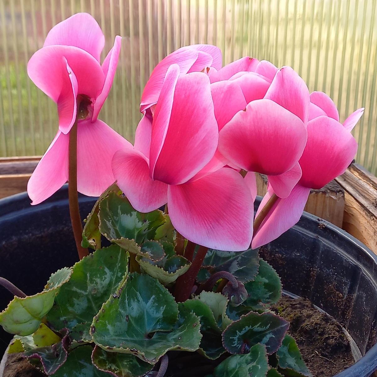 Цикламен — это удивительный цветок, который не только радует глаз своей изысканной красотой, но и приносит много положительных эмоций и пользы. Этот цветок стал любимцем многих цветоводов и любителей природы, благодаря своей оригинальной форме и ярким цветам. Мой цикламен был куплен в гипермаркете без малого два года назад и всё это время он ездит со мной из города на дачу и обратно. Была мысль высадить в открытый грунт, но подумала, что зиму он там не переживёт. Каждую весну пересаживаю в более просторный горшок. И живёт мой цикламен на улице до самых холодов. Цикламены бывают самых разных оттенков — от нежно-розового до ярко-красного и белого, что позволяет каждому подобрать растение по своему вкусу и настроению. Эти цветы могут стать ярким акцентом в интерьере или прекрасным подарком для близких. Легкость в уходе. Цикламены довольно неприхотливы, и при правильном уходе могут радовать своим цветением долгое время. Они предпочитают прохладное место и не требуют частой поливки, что де