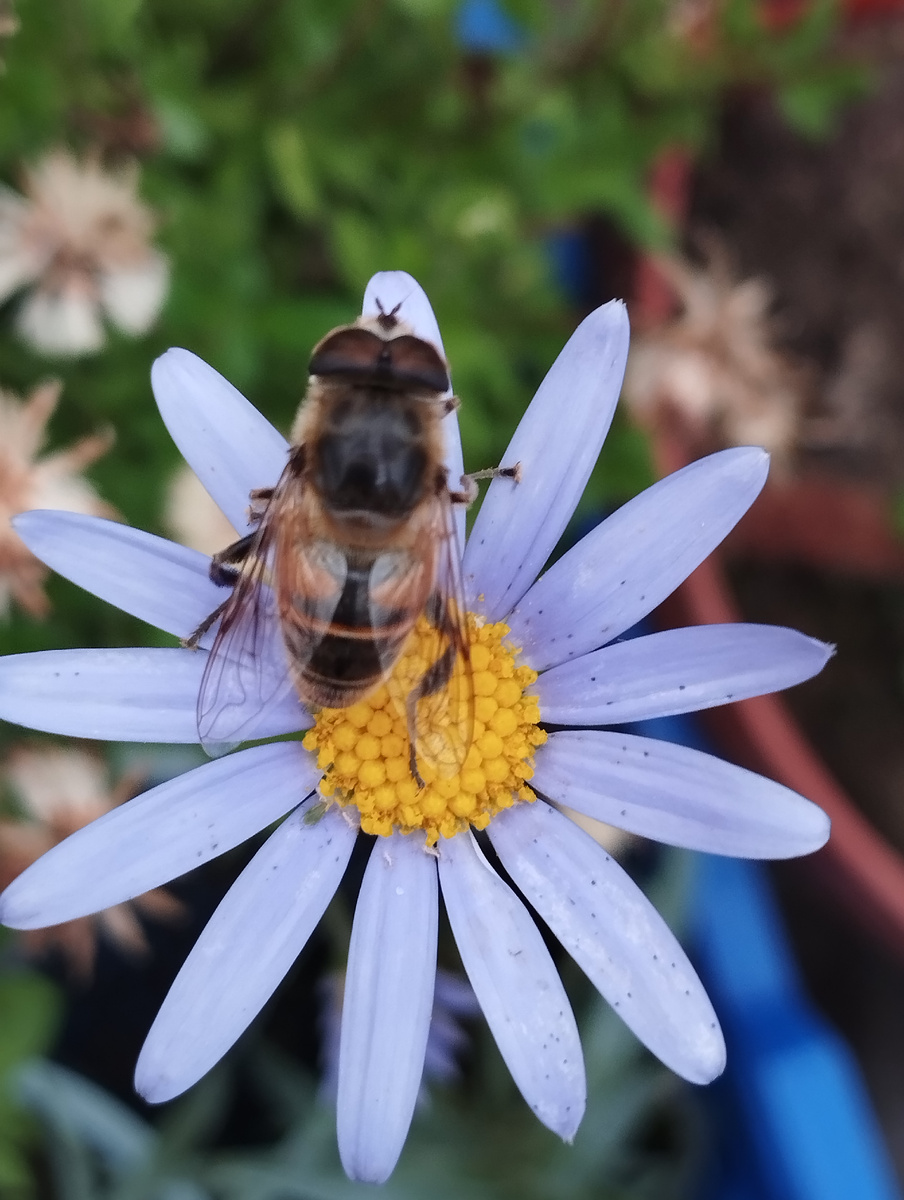 Доброго времени суток уважаемые читатели! Каждый день захожу в свои теплицы: полив, ревизия, формирование, пикирование, черенкование и т.д. работы много все сезоны!! Но, всегда выделяю время для фото кадров! Чудо всегда рядом просто нужно остановится, и посмотреть внимательнее. Полюбуйтесь и Вы красотой, которую я поймала камерой!!! Фелиция цветёт, и привлекает пчёл, которые остались в моей теплице. Кадры получились замечательные!!!! Декабрь 2025 г. "Фелиция&Пчёлка"