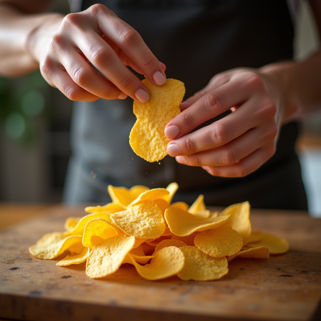 Приготовление чипсов в домашних условиях — это не только увлекательный процесс, но и возможность порадовать себя и близких вкусной закуской. Для начала вам понадобятся следующие ингредиенты: свежие картофелины, оливковое масло, соль и ваши любимые специи. Первым делом тщательно вымойте картофель и, при желании, очистите его от кожицы. Следующим шагом нарежьте картошку тонкими круглыми ломтиками. Для достижения идеальной текстуры используйте специальную нарезку или острый нож. Затем замочите ломтики в холодной воде на 30 минут, чтобы удалить лишний крахмал — это придаст чипсам хрустящую корочку. После замачивания обсушите картофельные ломтики бумажным полотенцем. В глубокой миске смешайте их с оливковым маслом и приправами. Разогрейте духовку до 180 градусов и выложите ломтики на противень, застеленный пергаментом, в один слой. Пеките чипсы около 20-25 минут, периодически переворачивая, до золотистой корочки. Готовые чипсы посыпьте солью и дайте остыть. Наслаждайтесь хрустящей з