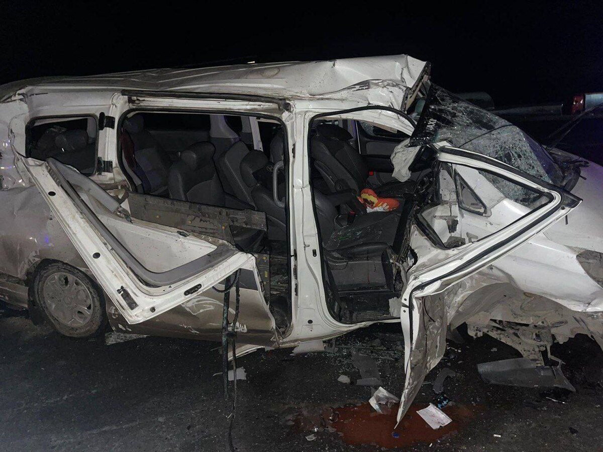 По предварительной информации, водитель автомобиля "Хендай Гранд Старекс", выезжая на федеральную дорогу с территории кафе, не уступил дорогу грузовому автомобилю "Мерседес".