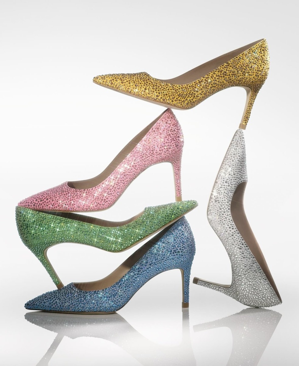 Каждая пара, тщательно изготовленная мастерами в Испании, украшена вручную более чем 6 000 кристаллов Swarovski Pavé. Этот лимитированный дизайн доступен в пяти цветах: желтый, белый, голубой, зеленый и розовый. В голубой версии использованы кристаллы Swarovski ReCreated™ — самые экологичные кристаллы Swarovski на сегодняшний день и первые «переработанные» кристаллы в мире.