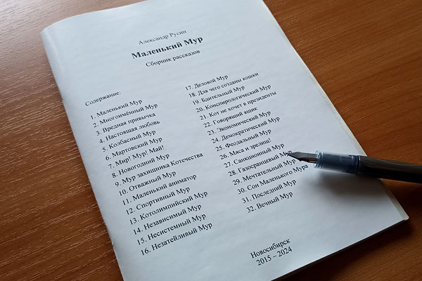 32. Вечный Мур * - не входят в сокращенный (детский) вариант сборника. Открывает сборник стихотворение "Кот-колбас", написанное вскоре после того, как автор принёс домой кота, ставшего впоследствии прототипом героя рассказов. В конце сборника в качестве эпилог