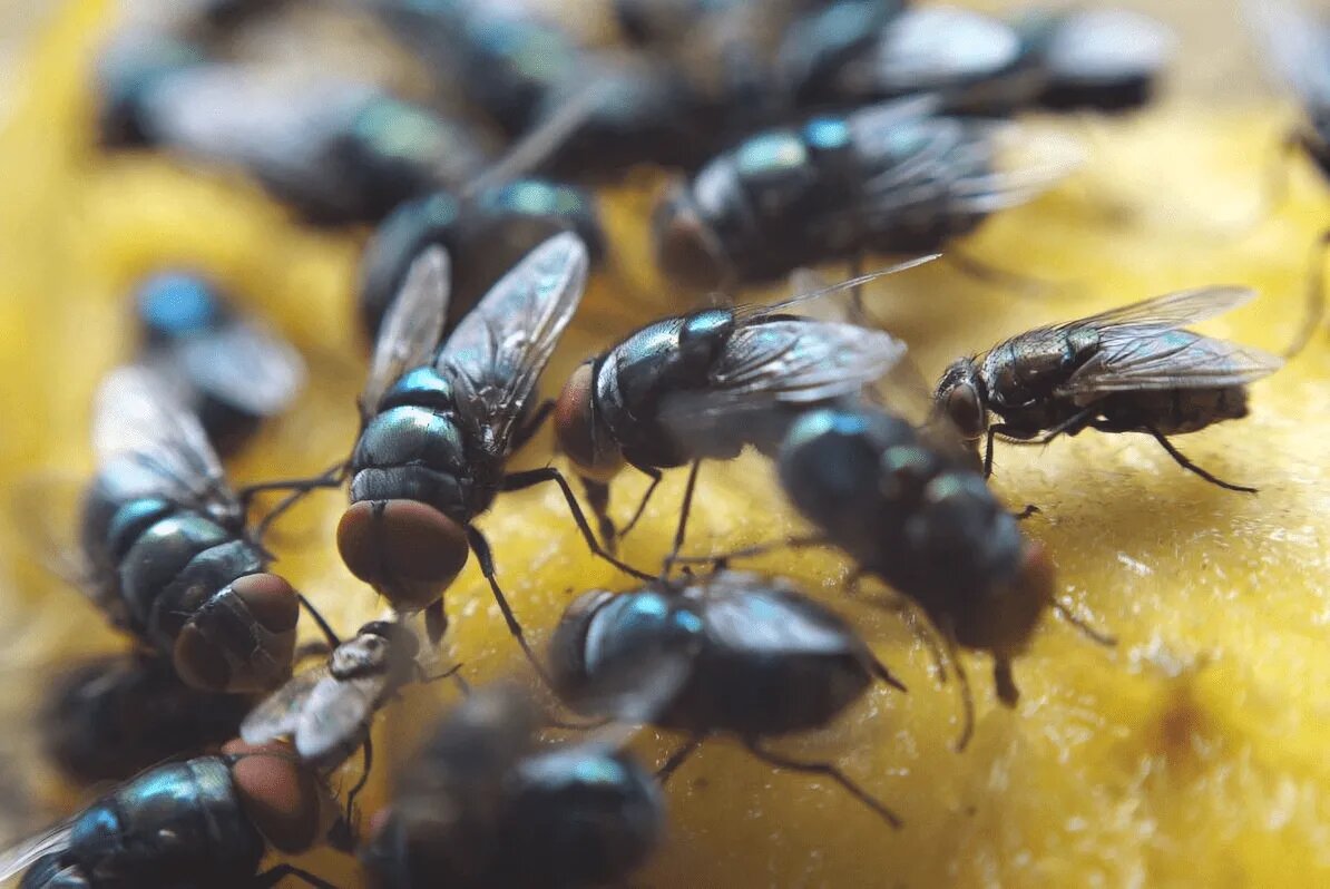 Мухи очень любят мусорные кучи и особенно, извините, дерьмо. А если дерьма нет, то они легко садятся на любой продукт и мусор, и делают из него дерьмо, т.к. на своих лапках они носят все необходимое для этого.