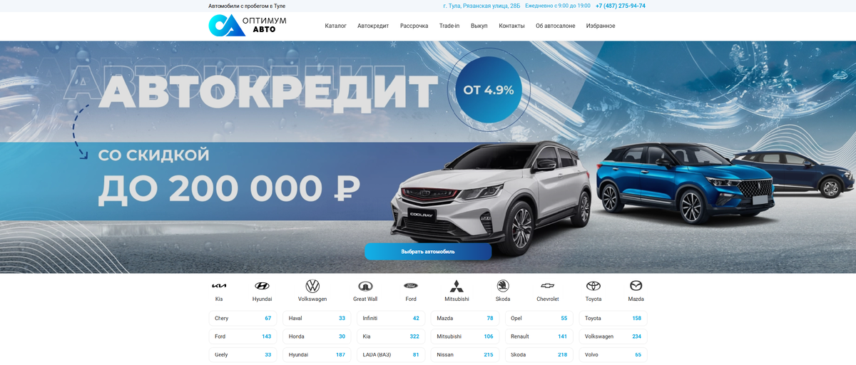 Еще больше читайте об Оптимум Авто читайте на сайте! Автоцентр Оптимум Авто в Туле, расположившийся на Рязанской улице, 28Б следующий на очереди автосалон, на который мы обратили внимание. Автосалон Оптимум Авто предоставляет широкий спектр услуг: продажа новых автомобилей и автомобилей с пробегом; продажа автомобилей в автокредит; сдача авто в Trade-in и даже выкуп вашего автомобиля. С первого взгляда просто замечательное место, да только можно ли верить этой агрессивной рекламе, и что в реальности происходит в стенах автосалона? Как и у многих других автосалонов, на сайте Оптимум Авто размещены объявления по продаже только новых автомобилей, но на самом деле этот автоцентр специализируется на продаже «поддержанных» авто. Ранее автосалон «Оптимум Авто» был известен под другим названием, но после ребрендинга продолжил свою работу. Сам салон небольшого размера и плохо представляешь себе, как все многочисленные марки автомобилей могли уместиться там. Но менеджеры заверяют, что большинст