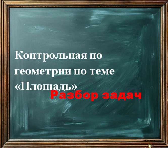Для успешного написания контрольной работы по геометрии по теме «Площадь» необходимо знать и уметь следующее: а) Основные формулы вычисления площадей многоугольников – треугольника, параллелограмма (в т. ч. ромба), трапеции. б) Уметь увидеть на чертеже, построенному по условию задачи, прямоугольный или равнобедренный треугольник. в) Следует из пункта б): уметь находить третью сторону прямоугольного треугольника, зная две друге стороны. Иначе говоря, уметь пользоваться теоремой Пифагора. Рассмотрим задачи из контрольных работ, составленных по учебнику Атанасяна. Решение: Прежде чем приступать к решению заметим, что 1)НК=СН (т.к. угол К=45 градусов) = АН (т.к. СН делит АК пополам)=ВС. 2) АК=2НК Собственно, это все, что нам нужно было заметить в условии этой задачи. Далее остается лишь подставить уже известные значения в формулу площади трапеции: Решение: Заметим, что в этой задаче нам даны стороны, но не даны углы. Это значит, что мы должны обратить внимание на соотношение сторон, кото