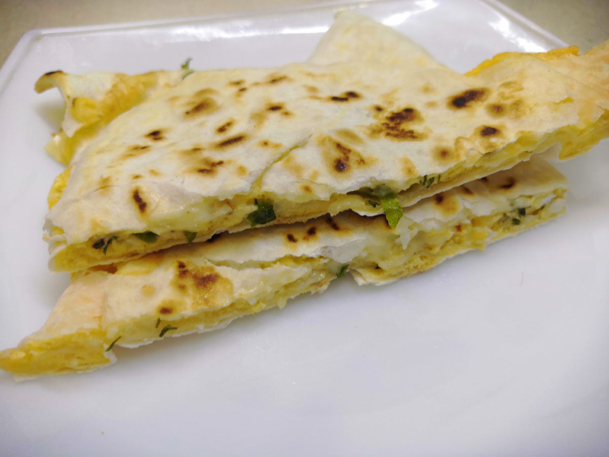 Это такой дежурный вариант на случай, если нет времени готовить и нужно сытно перекусить. Готовится быстро и легко КБЖУ на все: 268.5/18.7/14.8/15.1 Ингредиенты: 1. Если лаваш не круглый, вырезать круг используя тарелку. Сыр натереть и выложить на всю поверхность лаваша 2. Прямо сверху разбить яйцо и вилкой распределить по поверхности. Затем посолить, поперчить и посыпать зеленью. 3. Сложить треугольник. На слегка смазанной маслом сковороде обжарить с двух сторон.