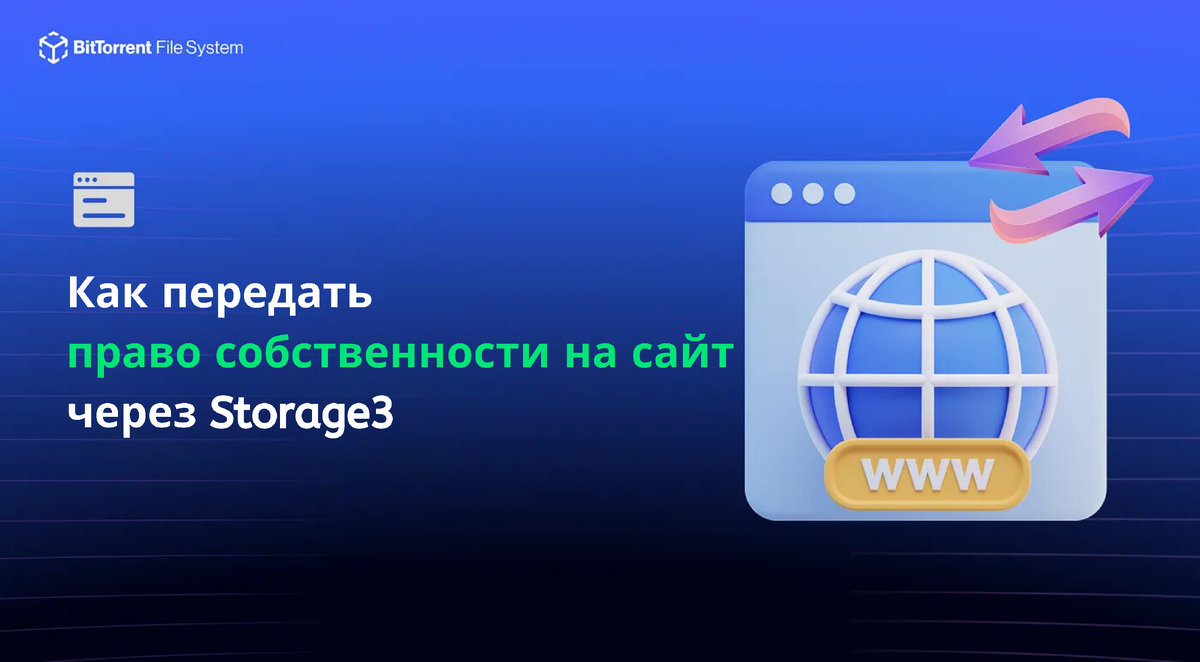 #BTT #BTFS#Storage3 #Storage #Decentralization#Depin Storage3 — это бесплатное приложение для хранения данных, созданное на основе децентрализованного протокола хранения BTFS. С помощью Storage 3 вы можете с легкостью размещать свои веб-сайты, приложения и другие сервисы на BTFS, даже если у вас нет технического образования. Чтобы изучить эффективное децентрализованное хранение бесплатно, посетите Storage3. Разработчики и предприятия могут столкнуться с необходимостью передачи прав собственности на веб-сайт по разным причинам. Это может быть связано с реорганизацией бизнеса, поглощением компаний, изменением состава команды или персонала отдела, передачей услуг подрядчиков или оптимизацией управления доступом. Для обеспечения последовательного и безопасного управления децентрализованными сайтами мы внедрили функцию передачи прав собственности на сайт в версии Storage3 v1.8.0. 2. Руководство по эксплуатации Чтобы передать право собственности на сайт на новый адрес, перейдите в “Настройки