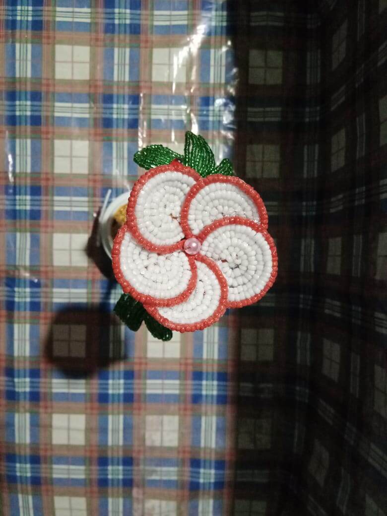 Бисер белый ,красный , зелёный . Зелёный скотч , божья коровка, гипс , баночка для цветочка , краска акрил .