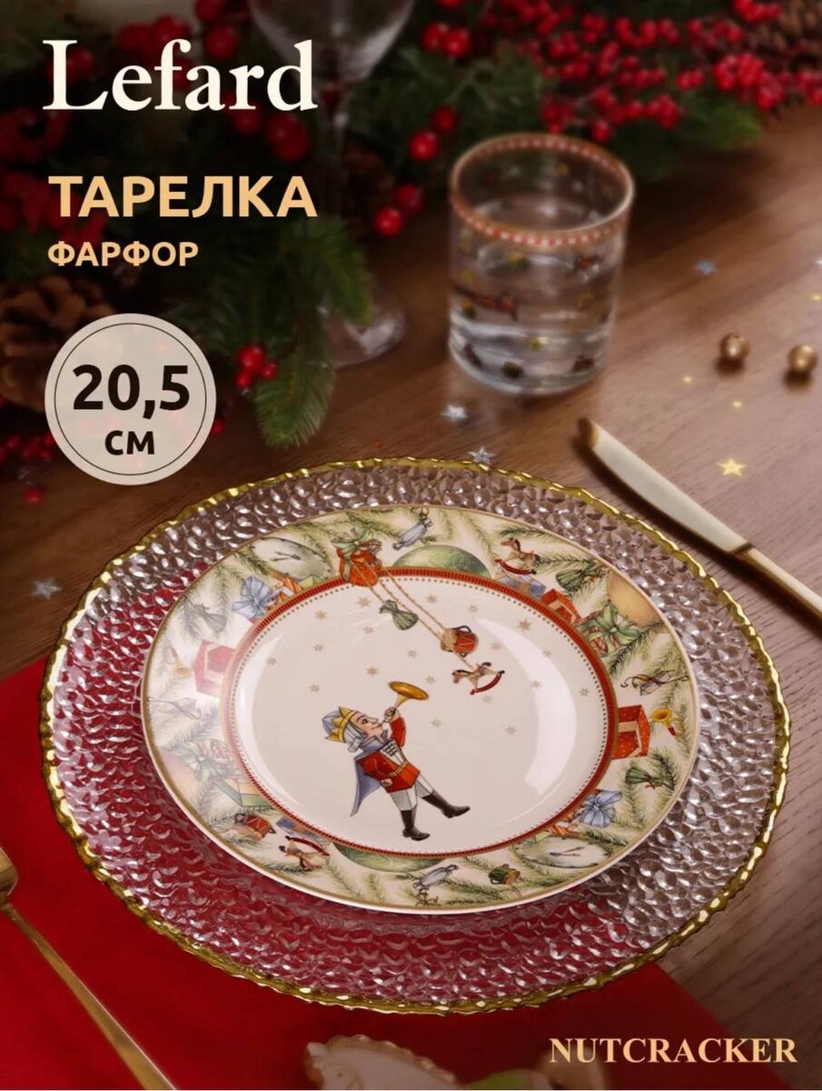 Подборка товаров для сервировки праздничного стола не дороже 1500 рублей (а в основном и 800 рублей )✅. Пока писала статью с идеями подарков близким осознала, как много сейчас красивой тематической посуды к праздникам и при этом по вполне приемлемым ценам. Решила обновить немного себе, а заодно и Вам показать интересные варианты 👌. Данная статья создана только для информирования, не является рекламой или не призывает к покупке указанных товаров. Что же я нашла на известном фиолетовом маркетплейсе? 🤔 Тарелка новогодняя 20,5 см Артикул: 161552798 А какая прекрасная балеринка 😍 Артикул: 166649776 И чудесный танец с Щелкунчиком Артикул: 26453804 Если честно, то я бы вполне собрала себе коллекцию с разным рисунком из этой серии, как мне кажется, выглядело бы это вполне гармонично в качестве комплекта, так как сюжет перекликается. Еще один прекрасный вариант этого же размера - 20,5см Артикул: 262453804 Кстати, все эти тарелки дублируются и в большем размере 26 см, во