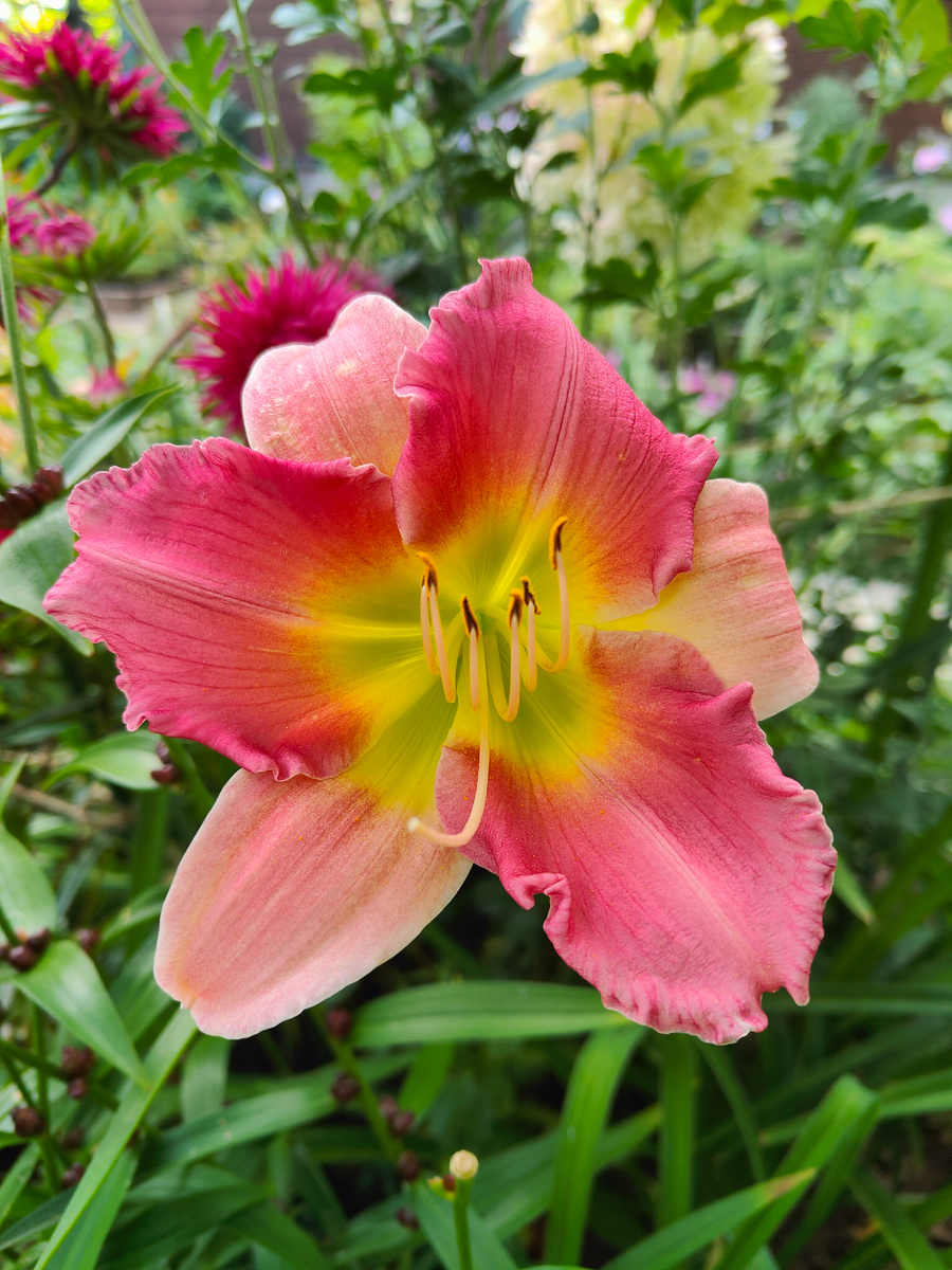 Сорт называется Файнал Тач. Это двуцветный лилейник, то есть его внешние и внутренние лепестки имеют разную окраску. Не сказать, чтобы это было редкостью среди гибридных лилейников, но и не особо распространено.