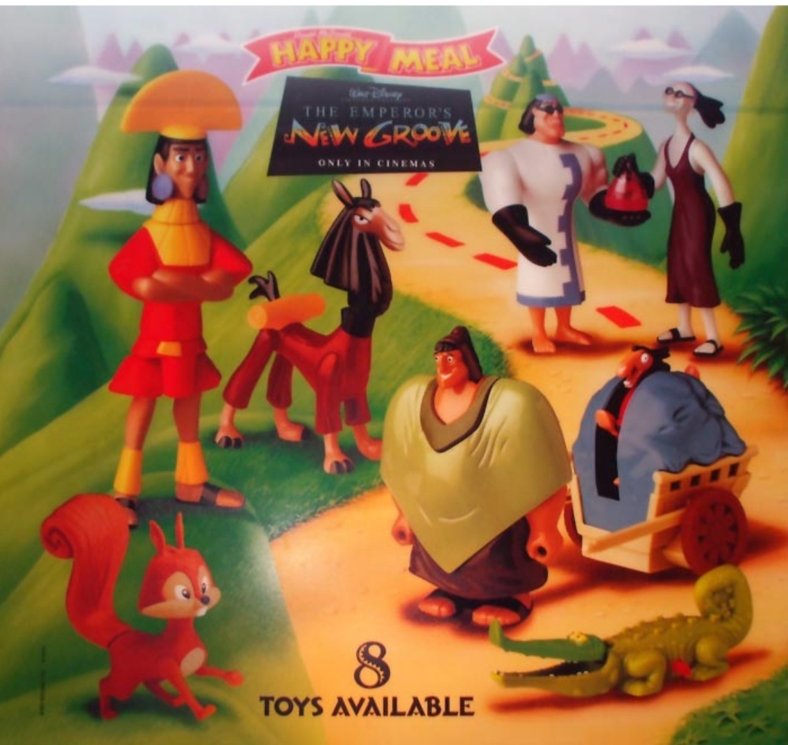 В серии Похождения императора 2001 из McDonald's 8 пластиковых персонажей одноименного мультфильма .