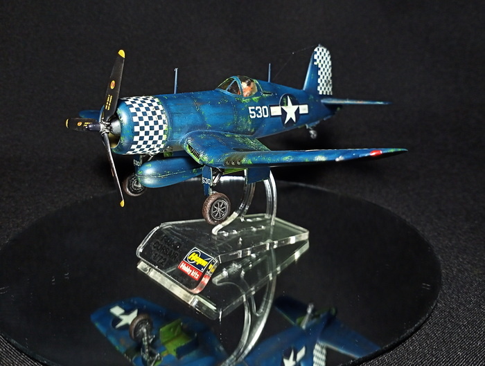 Представлена модель Chance-Vought F4U-1D Corsair в варианте истребителя из состава эскадрильи WMF-312 Checkerboards («Шахматные доски») Корпуса Морской Пехоты США, авианосец Hollandia. Пилот — лейтенант первого класса Merritt O'Chance (Мэррит О'Чэнс), Окинава, май 1945 года. Модель фирмы Hasegawa, масштаб 1/72.