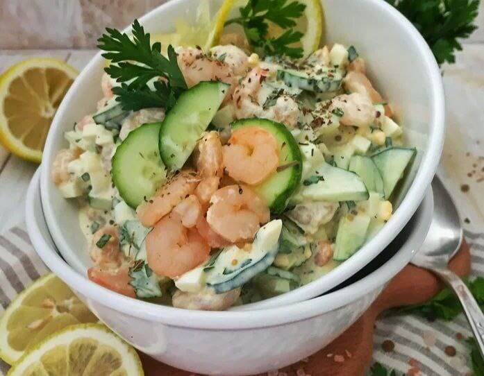 КБЖУ НА 100ГР 145,37/6,7/11,5/3,62 ИНГРЕДИЕНТЫ ●авокадо 1шт ● яйцо куриное 1шт ● креветки 100гр ●укроп 5гр ● сметана 15% 30гр ● огурец 1шт ПРИГОТОВЛЕНИЕ ✅️ отварить креветки, очистить ✅️ яйцо отварить, почистить, порезать ✅️ очистить авокадо и произвольно порезать ✅️ очистить огурец и порезать произвольно. ✅️ Сложить всё в салатник посолить, поперчить заправить сметаной. Приятного аппетита❤️