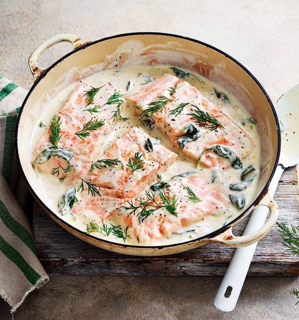 🔥На 100 гр всего 134,5 ккал БЖУ: 20/5,6/1,3 🔶ИНГРЕДИЕНТЫ: Стейки горбуши 500 г Сметана 10%. 75 г Рисовая мука 5 г Чеснок 3 зуб Сыр "легкий" 30 г Вода 150 мл Соль, перец, специи по вкусу 🔶 ПРИГОТОВЛЕНИЕ: Рыбу промыть, посолить, поперчить и добавить любимые специи. Обжарить с двух сторон на хорошо разогретой сковороде с каплей масла (по 2-3 минуты на сторону) Убрать рыбу со сковороды, выложить мелко порезанный чеснок и немного обжарить. Добавить сметана+ вода, рисовую муку и довести до кипения на среднем огне. Выложить обратно рыбу, накрыть крышкой и тушить ещё 15 минут, один раз перевернув кусочки.