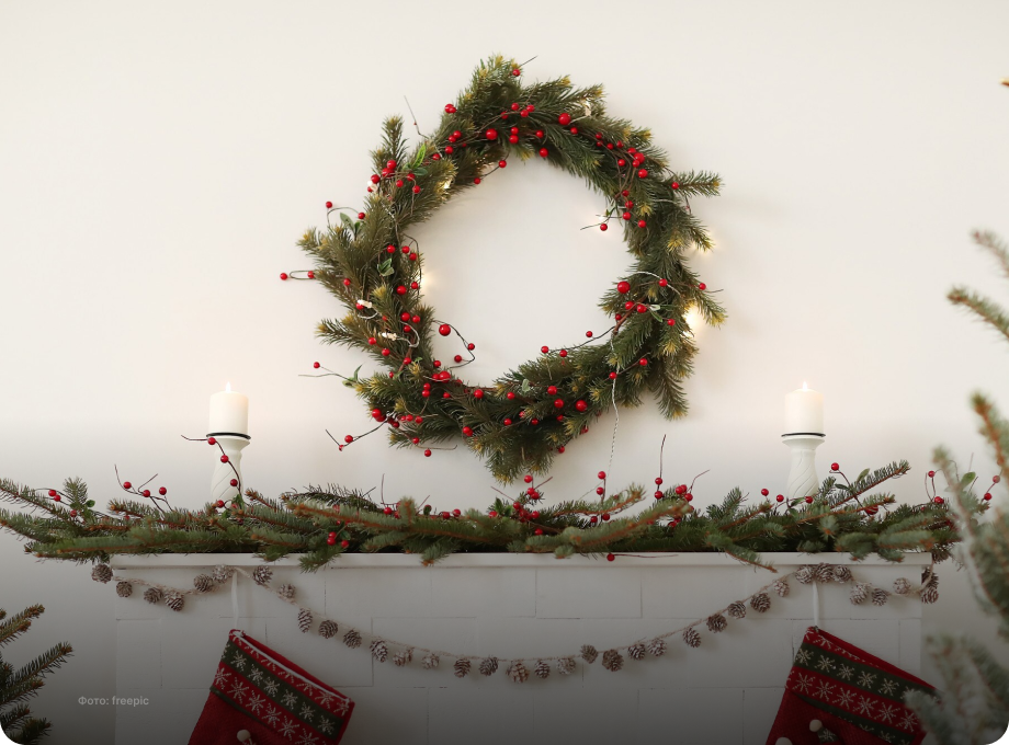 Гирлянды — это, что называется, база, но какая новогодняя атмосфера без свечей? Нашли сет в красивом бордовом цвете у бренда Tkano: широкая свеча в форме купола и две поменьше. Они без запаха и долго горят — на праздничную ночь точно хватит. А гостиную или спальню можно украсить прямо сейчас, пусть новогоднее настроение держится подольше. Свечи будут хорошо смотреться и вместе, и по отдельности. Лучший венок — это тот, который вы соберёте своими руками. Это отличное занятие на вечер для всей семьи. В наборе есть основа из ароматных веток пихты, шишки, сушёные дольки апельсина, палочки корицы, звёздочки бадьяна и ёлочные шарики — их можно подобрать под цвет интерьера. И добавить что-нибудь от себя: прелесть такого венка в том, насколько он отражает вас и ваши вкусы. Очень новогодняя вещь от бренда «Снег идёт», вдохновлённая стихотворением Бориса Пастернака о приближающемся празднике. На плед перенесли одного из персонажей — «убелённого пешехода». Вот он, ловит ртом снежинки, а рядом кот