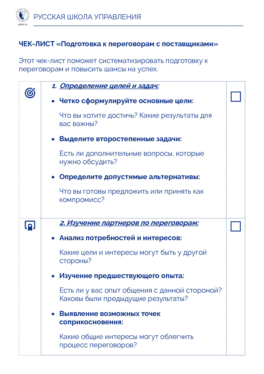 Чек-лист: "Подготовка к переговорам с поставщиками" (Lean-закупки)