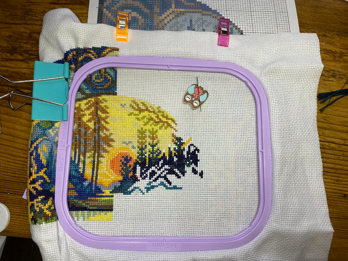 Также продолжу работу над осенним пейзажем от Панны. Решила, что каждый процесс буду отшивать всю неделю и чередовать между собой.