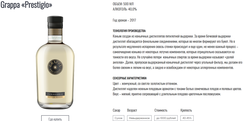 Всем привет! Одновременно и продолжаем занакомство с фруктовыми дистиллятами Фанагории, и открываем для себя новые вариации. Встречайте- граппы! Здесь я для начала чуть подофигел...По всем понятиям грапппа- напиток из виноградных выжимок, у Фанагории же сие заявлено как, страшно выговорить, КОНЬЯК, да ещё и из КОНЬЯЧНЫХ дистиллятов. Белый коньяк под названием граппа? С ума они там посходили?! Вот как к этому напитку подходить?! Как к белой пятилетней ординарке? Брррр..... Цвет тот же что и у водок. Аромат теперь уж наружу не рвётся. Вблизи он уже действительно куда интереснее водочных. И-да, именно привычнее за счёт знакомых коньячных нот. Ноты бочки при желании почувствовать можно. При всём интересе к аромату, он поначалу несколько ухудшает отношение к себе интенсивностью. Она уступает таковой водочным, чего не ожидается от более выдержаннного и классного напитка. Тем не менее по качеству и сложности аромат определённо на следующей ступеньке после водок. Что самое приколь