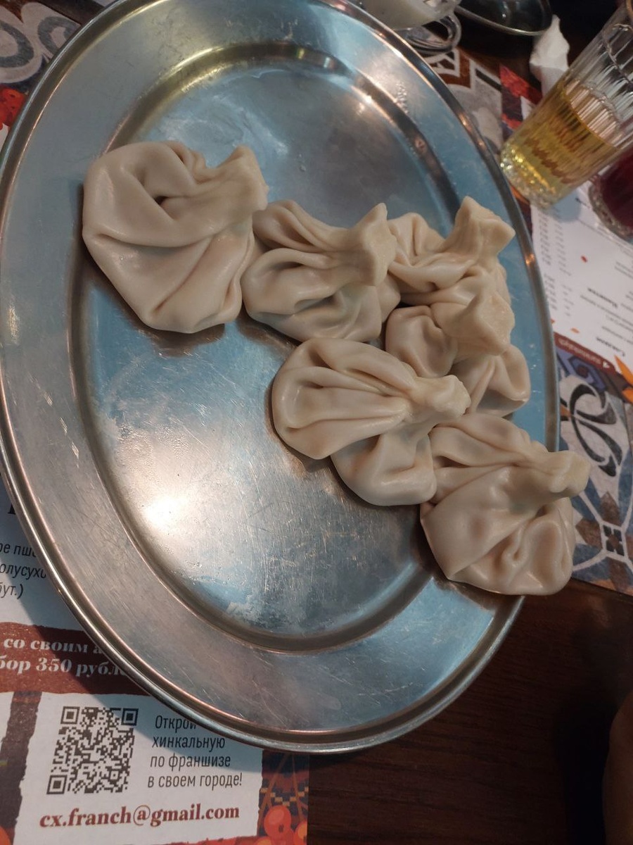 Каждый уважающий себя мужчина должен иметь коронное блюдо, от которого его дама сердца будет падать в обморок от вкусовой эйфории умоляя делать его вновь и вновь. Хинкали подходят для этого более чем идеально. Сейчас расскажу все технические особенности приготовления данного шедевра гастрономии. Первое, оно же главное, не ждите, что тесто получится как у ресторанных хинкалей, тесто в ресторанах промышленного производства, дома, руками такое сделать не получится, да и не надо. Легкая небрежность и топорность отличительная черта мужской готовки! Начинаем. Захватываем земельный надел с боем, распахиваем на нем поле, сеем, жнем, мелим.....или идем в магазин за мукой. Замешиваем плотное тесто на ледяной воде, чтобы пальцы немели, добавляя винный уксус. Уксус сделает тесто эластичным. Вымешивать надо долго с силой и терпением, сразу предупреждаю, это тяжело. Займет это 15 минут. Оставляем на ночь в холодильник и страшно гордимся собой до утра. Делаем начинку. Лука должно быть не менее тре