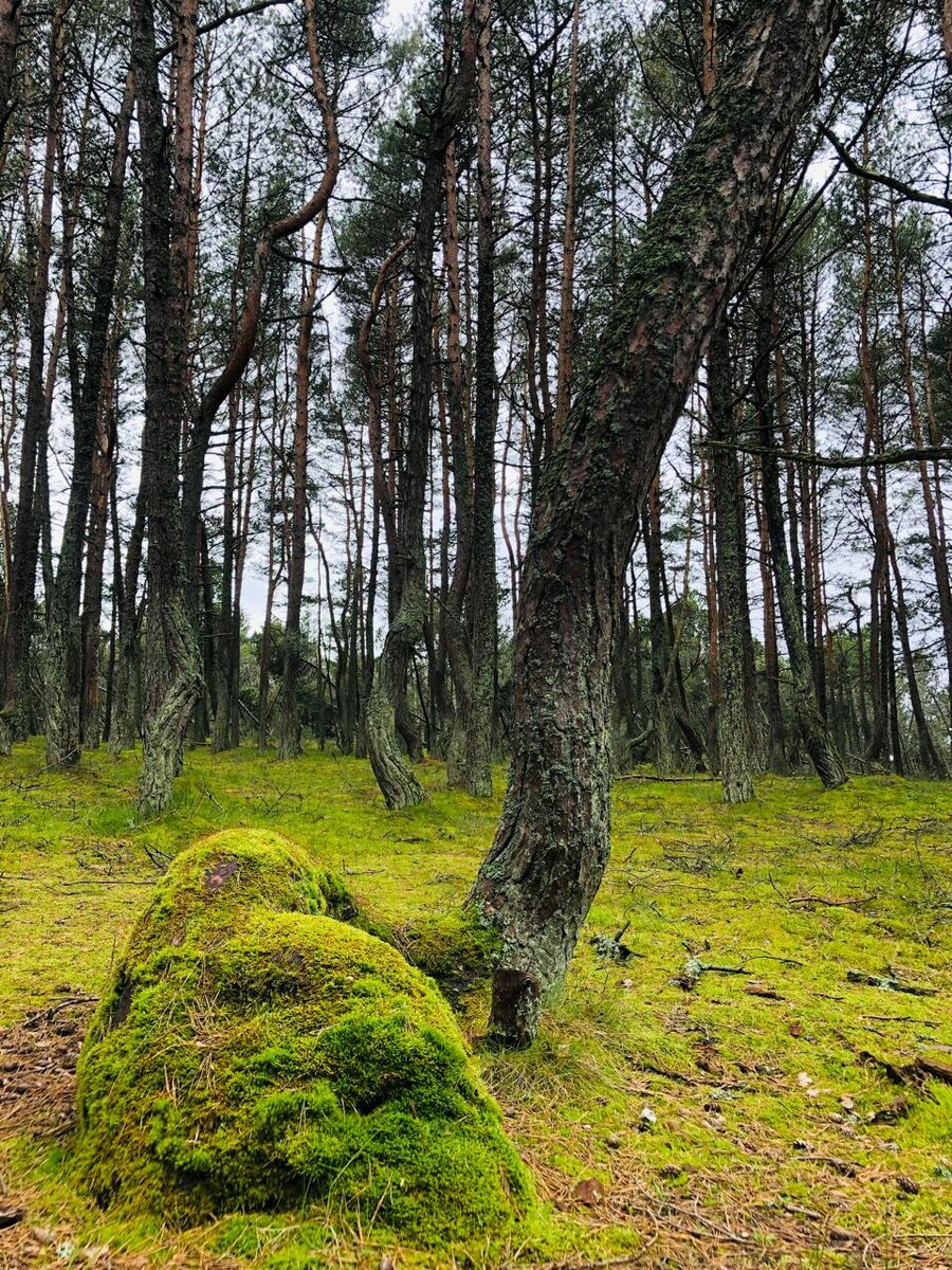 Необычный «Танцующий лес» можно увидеть на Куршской косе, которая представляет собой небольшой участок суши, протянувшийся от Зеленоградска в Калининградской области до литовской Клайпеды. В 1987 году на этой территории был открыт национальный парк «Куршская коса», который доступен для посещения туристами. Танцующий лес представляет собой небольшой участок суши размером около 800 метров, на котором высажены сосны. Лес находится недалеко от поселка Рыбачий. Лес назвали танцующим, так как сосны, высаженные на этой территории, неестественно изгибаются, а стволы некоторых деревьев даже закручиваются в кольцо. Выглядит это необычно и интересно. Вокруг леса ходит много легенд и тайн, которые делают место еще более загадочным. В причине такого роста деревьев пытаются разобраться биологи, историки, геологи и даже экстрасенсы. Лес сравнительно молодой; он был высажен в 1961 году, чтобы укрепить пески Куршской косы и сберечь их от вымывания. Но со временем стволы деревьев с