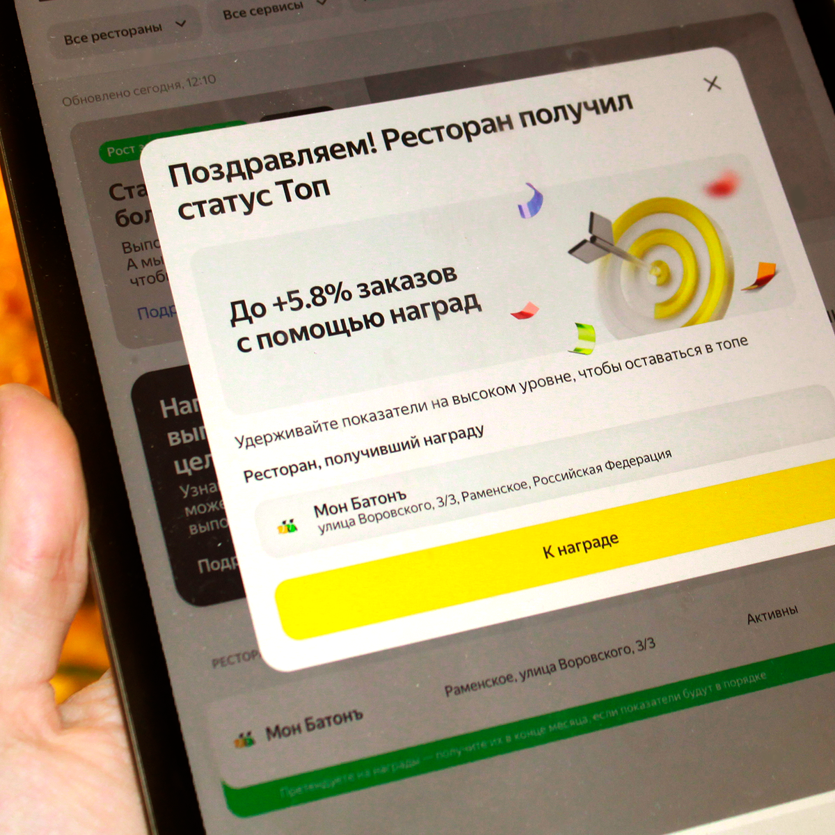 Невероятно приятно получать такие оповещения. В приложениях Яндекс.Еда и Деливери пиццерия “Мон БатонЪ” уже несколько месяцев подряд в ТОПе. Прекрасно, что наши покупатели оценивают старания нашей команды в целом и поваров в частности.