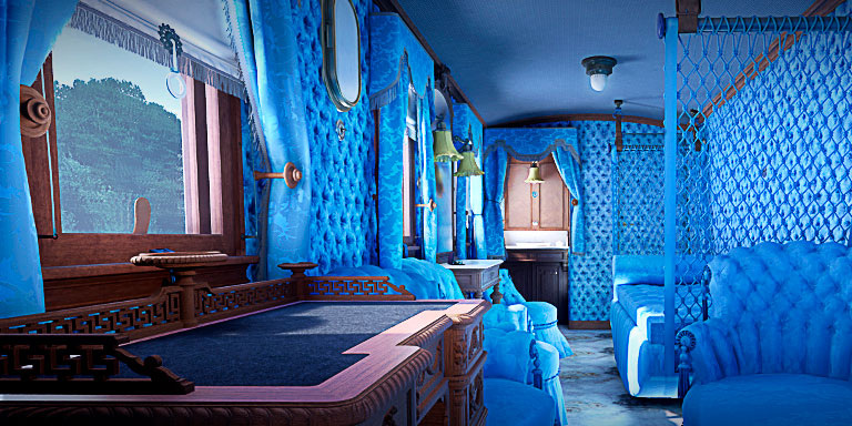 Почти по-настоящему оказалась в императорском поезде, который был предназначен для путешествий по территории великого княжества Финляндского, из Санкт-Петербурга до станции Рийхимяки. Изготовлен вагон был в Германии в 1870 году, снаружи окрашен в синий цвет и украшен двуглавыми орлами, внутри был отделан орехом, предметы мебели обтянуты темно-зеленой кожей. Теперь эти вагоны – экспонаты Финского железнодорожного музея в городе Хювинкяа. Но войти