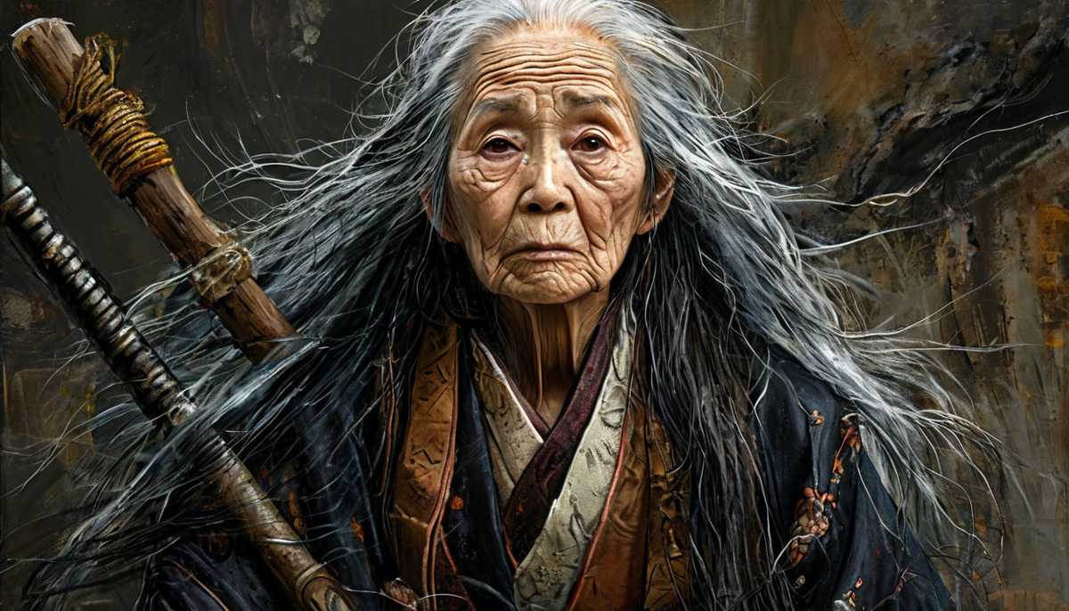 Ямауба (Yamauba), или "горная ведьма", — загадочная фигура японской мифологии, обитающая в отдалённых горах. Она воплощает двойственность природы: с одной стороны, это дух, связанный с магией и природными силами, с другой — коварная ведьма, способная обмануть и погубить. Ямауба обычно описывается как старая женщина с длинными седыми волосами, иногда растрёпанными, и лицом, которое одновременно излучает мудрость и что-то пугающее. Её одежда — тёмная и простая, отражает её тесную связь с природой и изоляцию от человеческого общества. Она живёт в лесу или в глухих горах, в хижине или пещере, часто окружённая аурой мистики. Особенностью Ямаубы являются её магические способности. Она владеет секретами природы, может варить зелья, накладывать заклинания и изменять свою внешность. Встреча с ней может быть как благословением, так и проклятием. Ямауба — персонаж амбивалентный, её образ колеблется между добром и злом. В одних историях она помогает путникам, предоставляет кров и еду, делится мудр