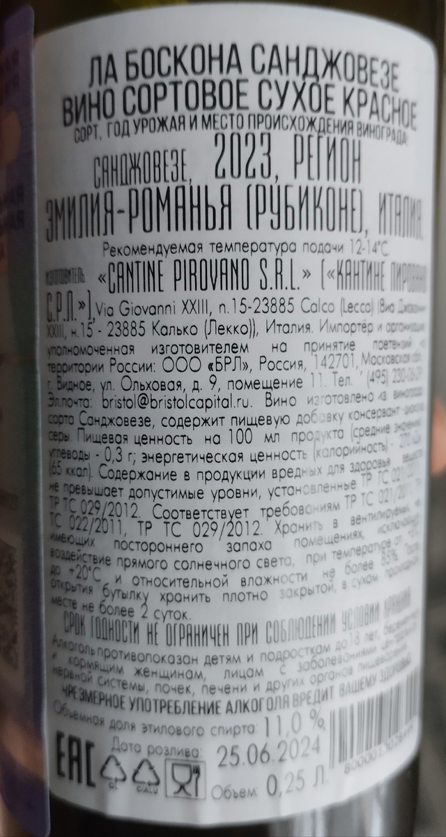 И выли сто собак, Это было в славном городе Торжок, Тверская Губерния. Классный город, много достопрмечательностей, неплохая доступность от Москвы. Есть много доступных локаций с едой, где кстати вкусно кормят. Но в тот вечер лило как из ведра, когда мы шли до нашей квартиры на улице великого русского физика и поэта. И придя в нашу штаб-квартиру на одну ночь, мы обнаружили там правильные бокалы. Бристоль был неподалеку, дождь почти прошел, а до 21.00 было еще двлеко. И я пошел в магазин. Конечно, прогулка в данном населенном пункте, после дождя, при почти повсеместном отсутствии тратуаров и под аккомпанемент лая сторожевых сабак. Тишина, тлен и бездуховность. И была куплена именно эта бутылка формата 0,375 литра. А зачем много? Мы ж не пьем, мы дегустируем. Цвет рубиновый. В аромате вишневый джем, терн, ежевика, черешня, сливовое варенье, табачный лист, кожа, сухие степные трвы, дуб. Во вкусе средн