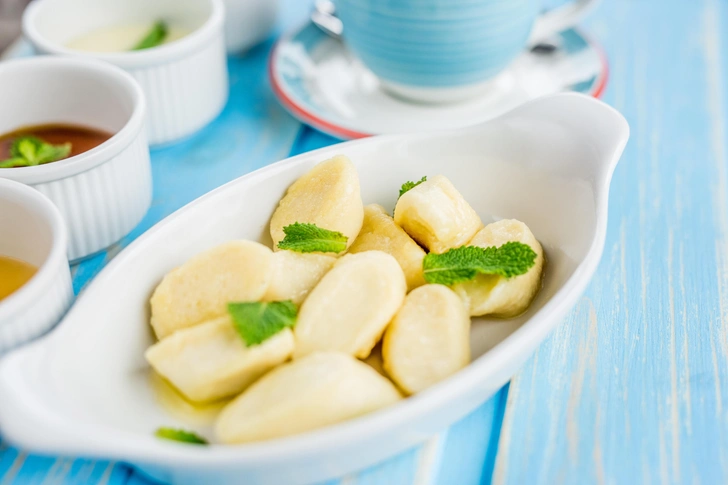 У этого рецепта говорящее название — «ленивые» вареники. Главное их отличие от обычных в том, что в них творог и мука смешиваются, как в сырниках, затем из теста формируется колбаска, которую нужно нарезать небольшими кусочками. И все! Не нужно формировать аккуратные варенички, и следить, чтобы начинка из них не вытекла. Есть такие вареники можно с любым топпингом — сметаной, сливками, вареньем, медом, ванильным соусом, или со сливочным маслом.