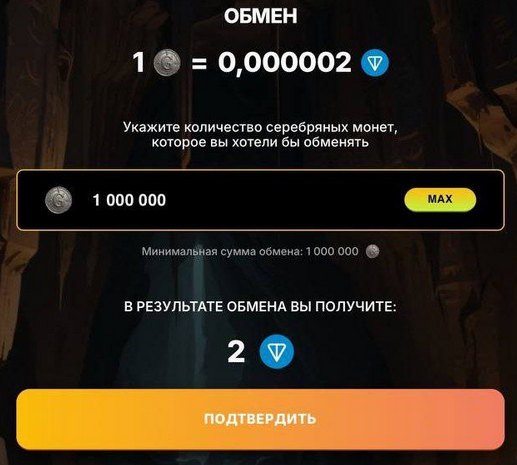 📆Листинг на крупных биржах в сети 🤑TON. Дата еще не известна. ⚡️ В игре всего 8 шахт, нам нужно добраться до 7-8 шахты, они приносят прибыль уже в серебре. (Серебро - монета следующего мира, которая будет участвовать в эирдропе). Это и есть основная цель игры в первом мире Bronze world: добыть максимальное количество серебряных монет. С полностью разработанной 7-й шахтой вы будете получать 100 000 серебра каждый день, что позволит вам достичь первого миллиона всего за 10 дней. Откройте для себя мощь 8-й шахты, и ваши доходы взлетят еще на 200 000 монет.
