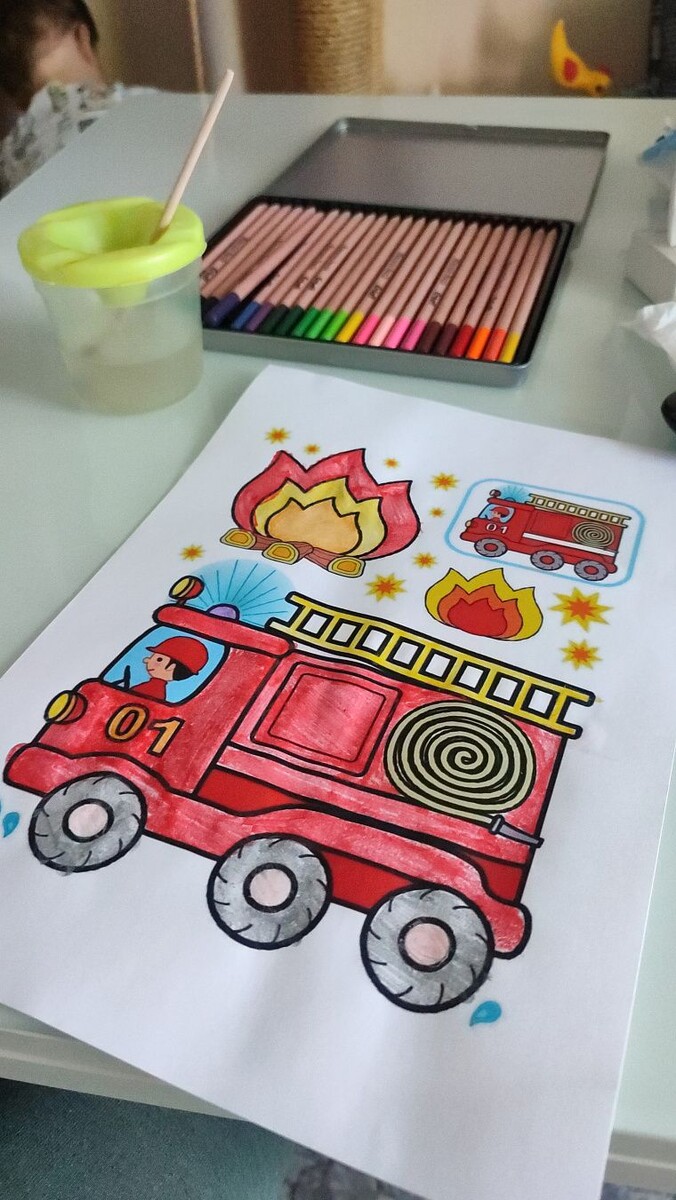 Время до прихода папы с работы пролетело незаметно. Несколько листов раскрасок закрашены, да, не слишком аккуратно, но такие яркие и чистые цвета, что приятно смотреть.