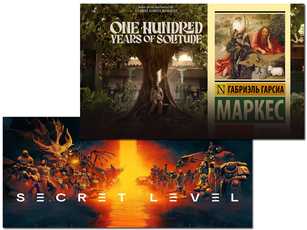 "Секретный уровень" (Secret Level) Анимационный сериал, состоящий из коротких и не связанных между собой серий. Каждая серия снята по определённой компьютерной игре... До уровня "Любовь, смерть и роботы", во всяком случае его первого сезона, не дотягивает - но ничего так. Где-то чуть лучше, где-то чуть похуже, где-то довольно предсказуемо - как, например, в серии по "Вахе" - естественно пафос и превозмогание. Ну, а где-то было неожиданно - как в серии с Пакменом: казалось бы - что можно придумать на основе такого, а оно вон как "Сто лет одиночества" (Cien Años de Soledad) Ещё одна новинка из серии "с пылу, с жару" - сериал по культовой книге Маркеса, которая (внезапно!) называется тоже "Сто лет одиночества". Уселся смотреть сериал, а параллельно с ним стал читать книгу. И... Начну, пожалуй, с книги. Так сложилось, что до сей поры я только собирался с ней познакомиться и только с выходом сериала решил восполнить данный пробел. Так вот - после всех восторженных отзывов, после множества